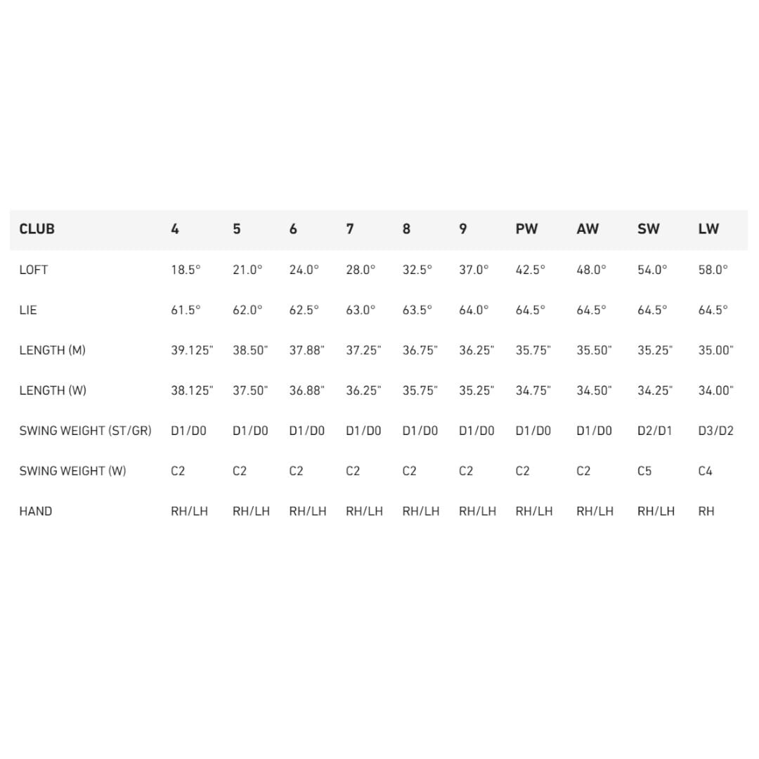 Technologia FLTD CG™ (Flighted Center of Gravity) polega na strategicznym rozmieszczeniu środka ciężkości w zależności od numeru iron'a: